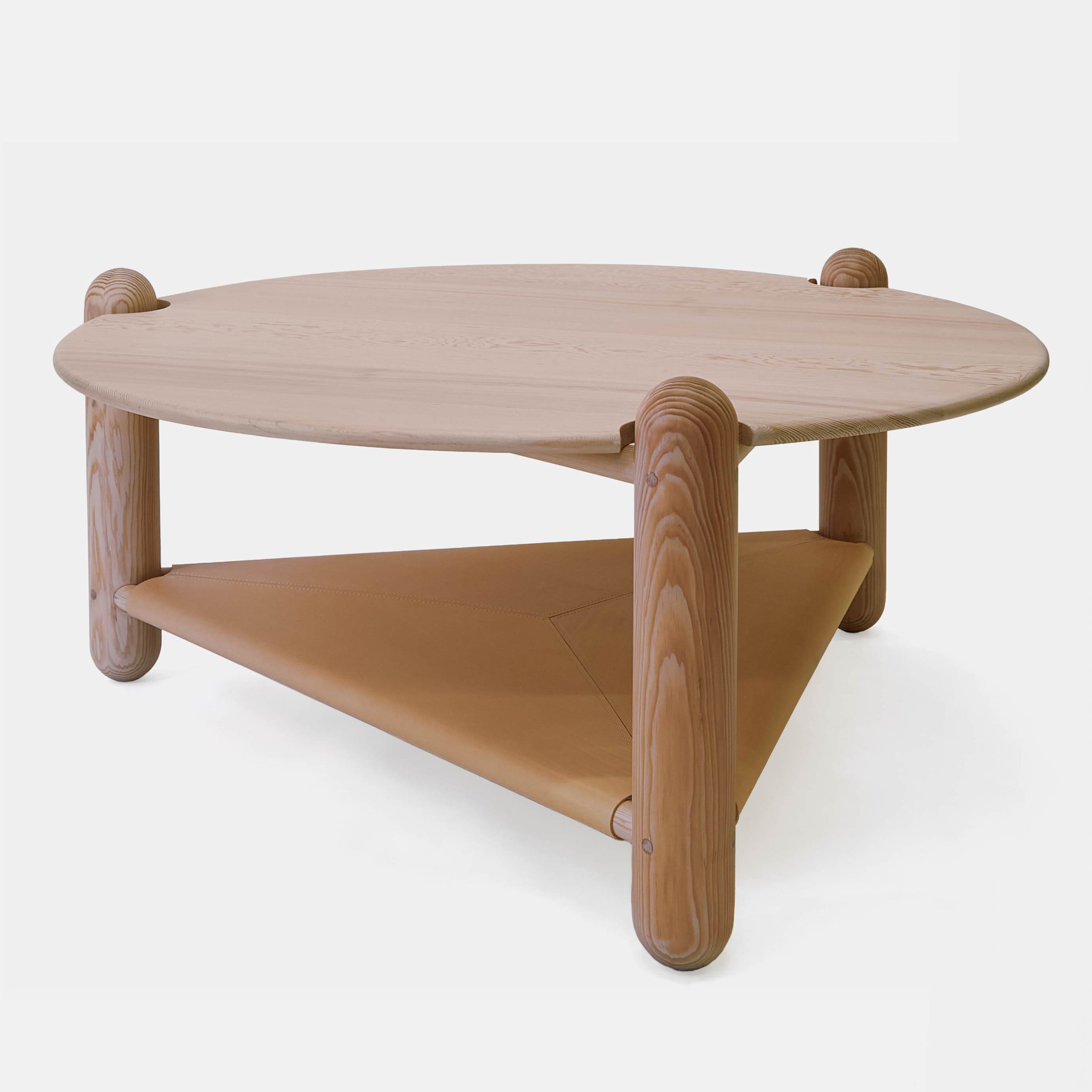 This coffee table combines natural materials with thoughtful design for a refined modern look. The round marble top rests on three smoothly rounded wood legs, offering a warm contrast to the cool stone. Below, a handwoven Danish Cord shelf adds texture, balance, and practical storage. All the joinery is traditional mortise and tenons that have been pinned. This limited-edition finish features an ombre gradient on the legs.